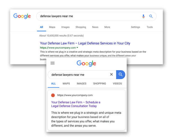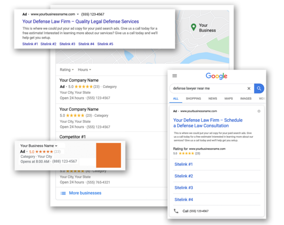 Utilizing Facebook’s advertising platform, we can tap into many different audiences of people on Facebook and Instagram. Social Media advertising has the unique ability to not only target the right Defense Law customer in the area of your choice, but it also allows social interaction between a customer and the Defense Law Firm. People can comment, like, and share your post with other friends and family. Facebook also has the ability to use video and image ads to engage potential customers. Your customers are Facebook and Instagram, and we’ll use these platforms to reach them directly with your messaging.